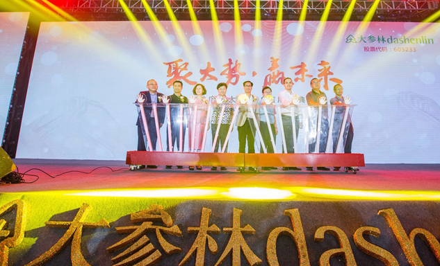 AG贵宾会药业集团董事长刘景萍女士与大参林医药集团董事长柯云峰先生、中国医药商业协会执行会长付明仲女士等嘉宾共同开启了“聚大势•赢未来"大参林工商合作峰会的大幕。